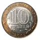 | Obverse description | In the centre - the indication of the face value of the coin `10 РУБЛЕЙ` (10 ROUBLES). Inside of the figure `0` - hidden pictures of the figure `10` and of the inscription `РУБ` (RUB) visible by turns only on changing the angle of vision. In the lower part of the disc - the mint trade mark. In the upper pan of the ring - the inscription along the rim: `БАНК РОССИИ` (BANK OF RUSSIA), in the lower one - the year of issue `2002`, to the left and to the right - stylised twigs of plants going over to the disc. |