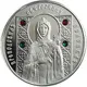 | Reverse description | At the top – a circumferential inscription of the Saint’s name: ПРЕПОДОБНАЯ ЕВФРОСИНИЯ ПОЛОЦКАЯ (SAINT EUPHROSYNE OF POLOTSK); and in the center – the image of St Euphrosyne of Polotsk against the background of the ornament used in iconography (inlaid with four synthetic crystals). |