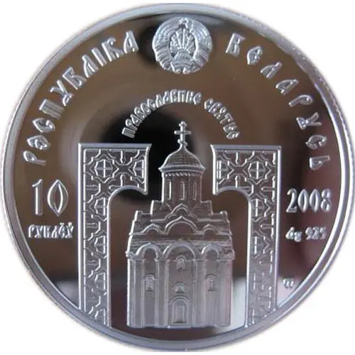 | Obverse lettering | РЭСПУБЛIКА БЕЛАРУСЬ ПРАВОСЛАВНЫЕ СВЯТЫЕ 10 РУБЛЁЎ 2008 Ag 925 MW (Translation: THE REPUBLIC OF BELARUS ORTHODOX SAINTS 10 ROUBLES 2008 Ag 925 MW) |