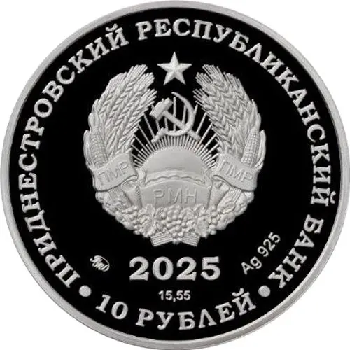 | Obverse lettering | ПРИДНЕСТРОВСКИЙ РЕСПУБЛИКАНСКИЙ БАНК 2025 15,55 Ag 925 10 РУБЛЕЙ (Translation: TRANSDNISTRIAN REPUBLICAN BANK 10 ROUBLES) |