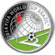 In the centre, against the stylized image of the globe — the fragment of the corner of a football field with the ball therein; and at the top — the circumferential inscription: 2014 FIFA WORLD CUP BRAZIL (TM). |