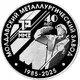 | Reverse description | On the left – an image of the logo of the Moldavian Metallurgical Plant OJSC (Rybnitsa); in the center – a stylized image of metallurgical products; on the right – an image of a metallurgist, above him – an inscription in two lines “40 YEARS”; around the circle – inscriptions: at the top – “MOLDAVIAN METALLURGICAL PLANT”, at the bottom – “1985-2025”. |