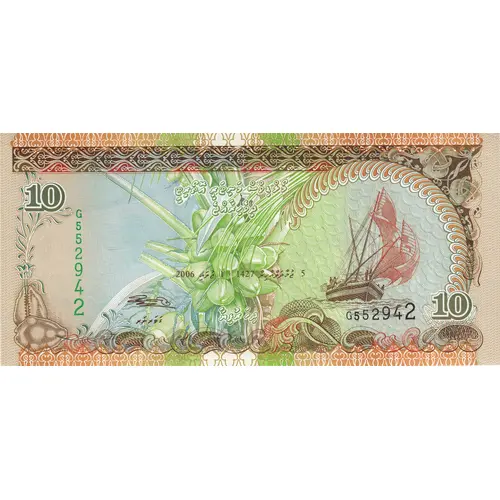 Reverse lettering TEN RUFIYAA 10 10 MALDIVES MONETARY AUTHORITY 10