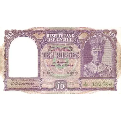 RESERVE BANK OF INDIA GUARANTEED BY THE CENTRAL GOVERNMENT I PROMISE TO PAY THE BEARER THE SUM OF TEN RUPEES ON DEMAND AT ANY OFFICE OF ISSUE FOR THE RESERVE BANK OF INDIA (SIGNATURE) GOVERNOR |