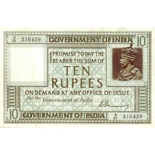 GOVERNMENT OF INDIA I PROMISE TO PAY THE BEARER THE SUM OF TEN RUPEES ON DEMAND AT ANY OFFICE OF ISSUE for the Government of India GOVERNMENT OF INDIA |