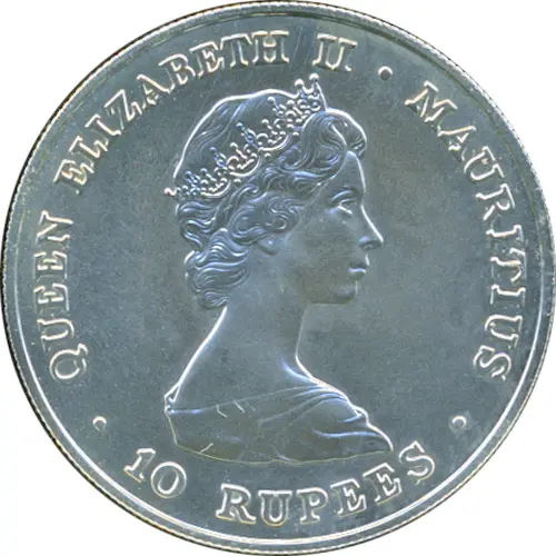 | Obverse lettering | QUEEN ELIZABETH II MAURITIUS · 10 RUPEES · |