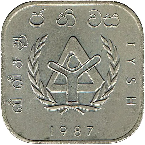 | Obverse lettering | வீ வீ கே ஆ ජ ති වය IYSH 1987 |