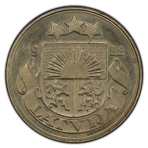 | Obverse lettering | 1922 LATVIJA HUGUENIN |
