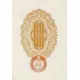 Ochre text in cartouche on decorative guilloche with red seal below |
