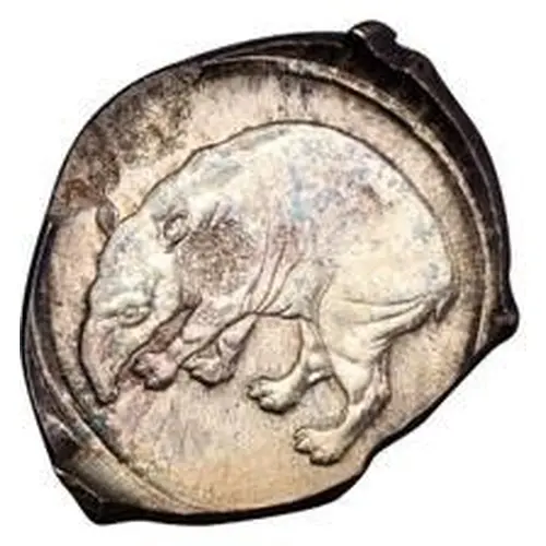 Technical/Grading: As a Matrix/Die Trial, this coin typically exhibits exceptional strike quality, often superior to circulation issues. High-points on the Tapir design include the animal's head, snout, and body contours. On the obverse, numerals and lettering show full definition. The silver planchet, unusual for this denomination, allowed for a particularly sharp and detailed strike, showcasing excellent metal flow and crispness in all design elements, including the milled edge. Trials are struck with great care.