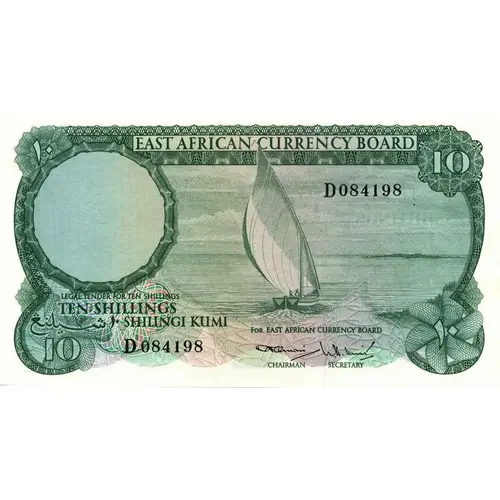 | Obverse lettering | EAST AFRICAN CURRENCY BOARD LEGAL TENDER FOR TEN SHILLINGS SHILINGI KUMI |