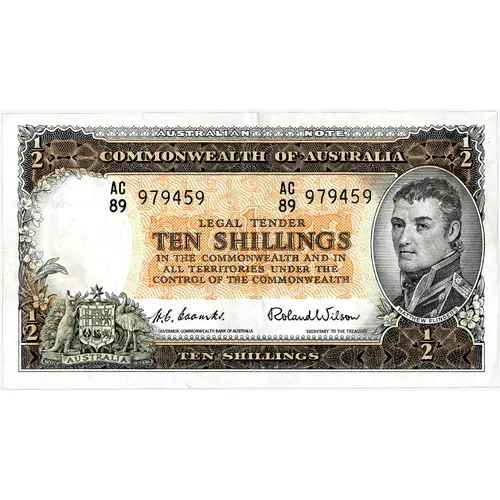 | Reverse lettering | COMMONWEALTH OF AUSTRALIA TEN SHILLINGS HALF 10/- HALF |