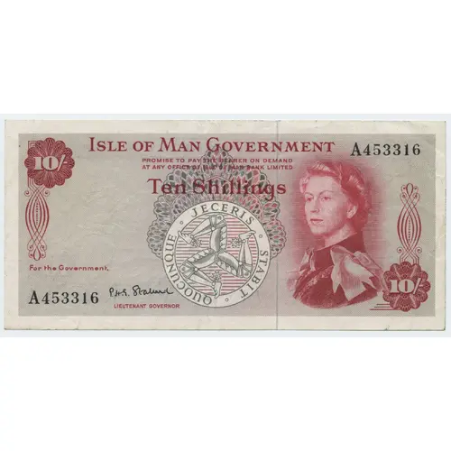 | Obverse lettering | Isle of Man Government Promise to pay the bearer on demand at any office of the Isle of Man Bank Limited Ten Shillings |
