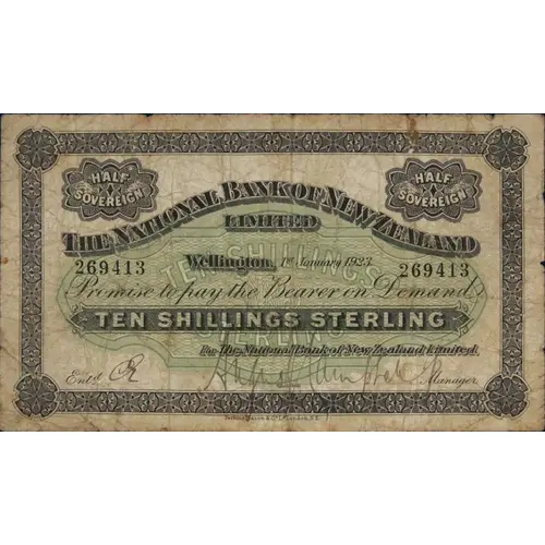 | Obverse lettering | HALF SOVEREIGN HALF SOVEREIGN THE NATIONAL BANK OF NEW ZEALAND LIMITED WELLINGTON PROMISE TO PAY THE BEARER ON DEMAND TEN SHILLINGS STERLING FOR THE NATIONAL BANK OF NEW ZEALAND LIMITED |