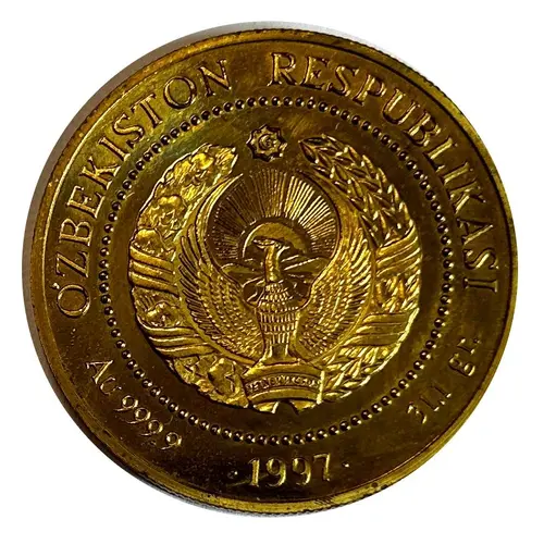| Obverse lettering | OʻZBEKISTON RESPUBLIKASI Au 999.9 • 1997 • 31.1 gr (Translation: Republic of Uzbekistan) |