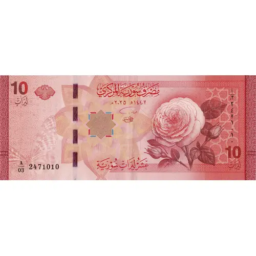 10 مصرف سورية المركزي ٢٠٢٥ 10 عشرة ليرة سورية (Translation: Central Bank of Syria Ten Syrian Pounds) |