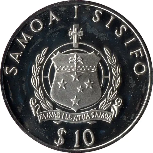 | Opis líce | SAMOA I SISIFO FAAVAE I LE ATUA SAMOA $10 (Translation: FAAVAE I LE ATUA SAMOA = Samoa is founded on God) |