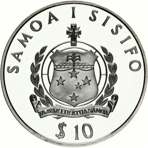 | Obverse lettering | SAMOA I SISIFO FAAVAE I LE ATUA SAMOA $ 10 |
