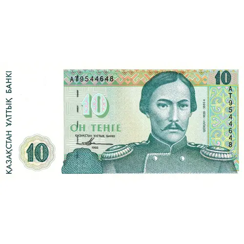 ҚАЗАҚСТАН ҰЛТТЫҚ БАНКІ 10 ОН ТЕҢГЕ ҚАЗАҚСТАН ҰЛТТЫҚ БАНКІ 1993 ШОҚАН - 1835–1865ж (Translation: National Bank of Kazakhstan, Ten Teñge, National Bank of Kazakhstan, Şoqan - year 1835-1865) |