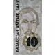 БАНКНОТТАРДЫ ҚОЛДАН ЖАСАУ ЗАҢМЕН ҚУДАЛАНАДЫ 10 ОН ТЕҢГЕ (Translation: Counterfeiting banknotes is punished by law, 10 Teñge) |