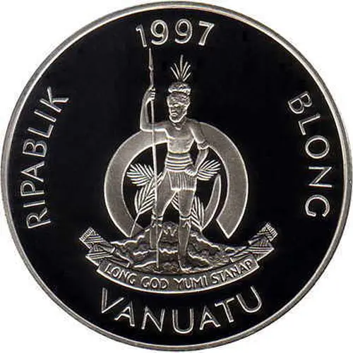 RIPABLIK BLONG VANUATU 1997 (Translation: Republic of Vanuatu In God we stand) |