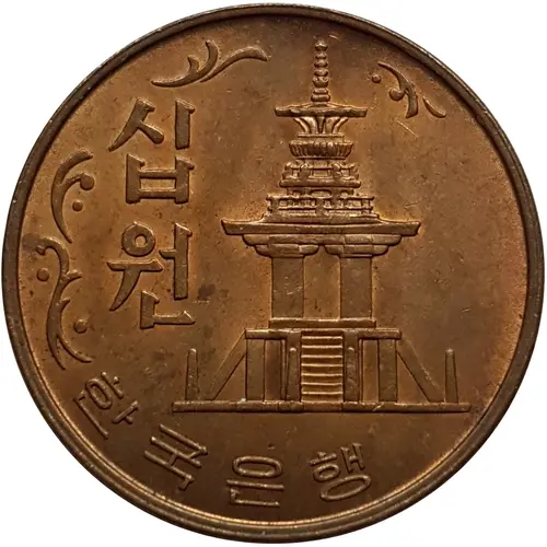 Artistry: The coin’s design blends traditional symbolism with modern clarity. The obverse prominently displays the Dabotap Pagoda from Bulguksa Temple, a revered National Treasure, rendered with clean, precise lines. This symbolizes South Korea's rich cultural heritage and national pride. The reverse presents the denomination "10 WON" in both Hangul and English, alongside the issuing authority "한국은행" (Bank of Korea) and the year, executed in clear, functional typography.