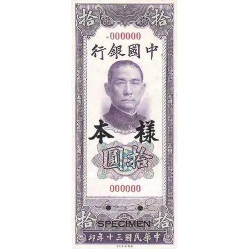 | Obverse lettering | 行银国中 圓拾 (Translation: Bank of China Ten Yuan) |