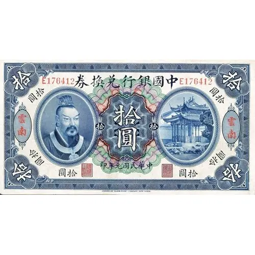 | Obverse lettering | 券换兑行银国中 拾 圓 (Translation: Bank of China Exchange Note Ten Yuan) |