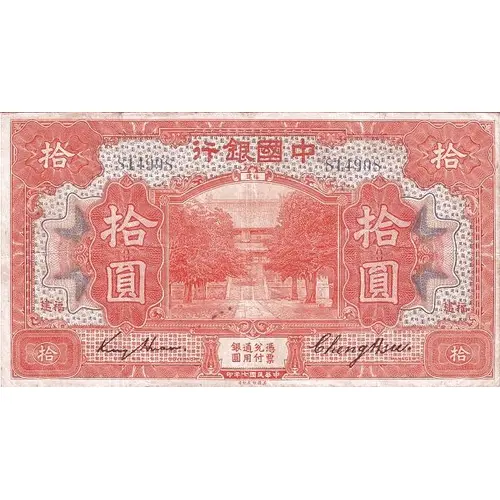 | Obverse lettering | 行银国中 拾 圓 (Translation: Bank of China Ten Yuan) |