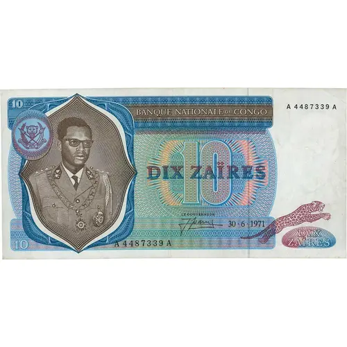BANQUE NATIONALE DU CONGO DIX ZAÏRES DIX ZAÏRES (Translation: NATIONAL BANK OF CONGO TEN ZAIRES TEN ZAIRES) |