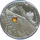 On the right side, an image of an Eagle as the State Emblem of the Republic of Poland. Below obliquely, the year of issue. On the left side, a stylized fragment of a goal and a stylised ball made of amber. |
