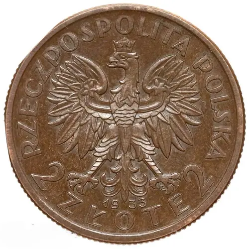 | Reverse description | The head of Polonia (alegory of Poland) facing left. |