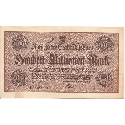 | Hodnota | 100 000 000 Mark (100 000 000) |