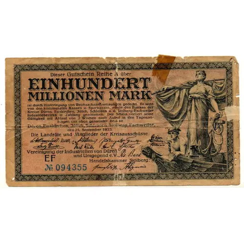 | Emisor | Districts of Düren, Euskirchen, Jülich, Stolberg and Eschweiler (Prussian province of Rhine) |