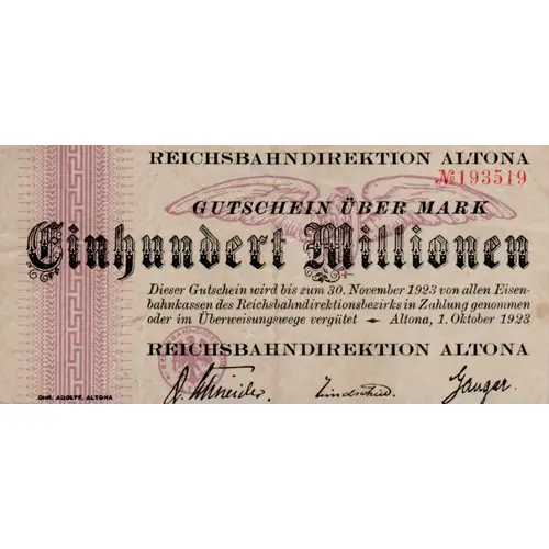 | Waarde | 100 000 000 Mark (100 000 000) |