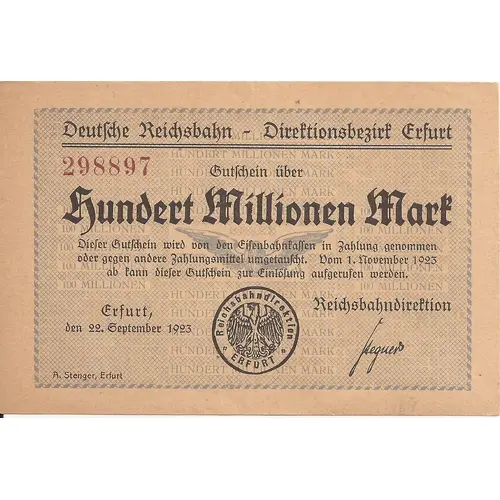 | Waarde | 100 000 000 Mark (100 000 000) |