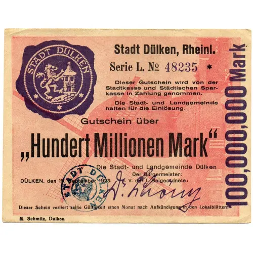 | صادرکننده | City of Dülken (Prussian province of Rhine) |