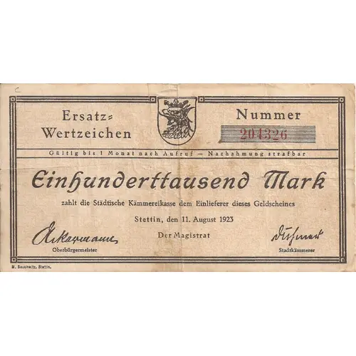 Issuer Stettin (notgeld), City of