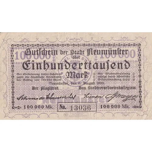 | Issuer | City of Neumünster (Prussian province of Schleswig-Holstein) |
