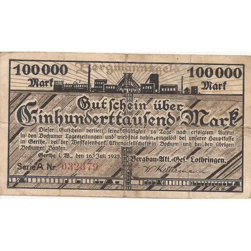 100 000 Mark Bergbau-Aktien-Gesellschaft Lothringen
