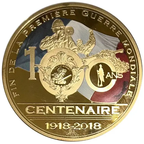 | Obverse lettering | FIN DE LA PREMIÈRE GUERRE MONDIALE 100 ANS CENTENAIRE 1918-2018 |