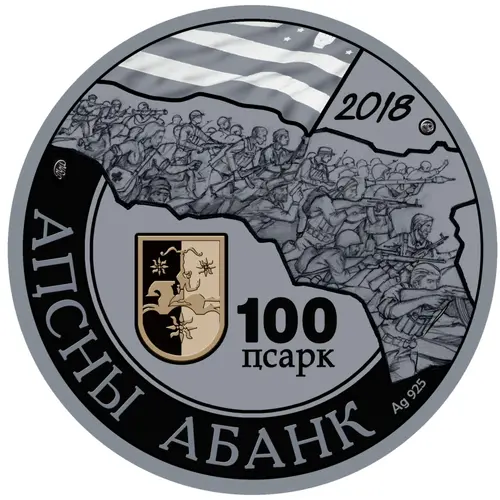 | Obverse lettering | 2018 100 ҦСАРК ММД АҦСНЫ АБАНК Ag 925 (Translation: 2018 100 Apsars MMD Bank of Abkhazia Ag 925) |