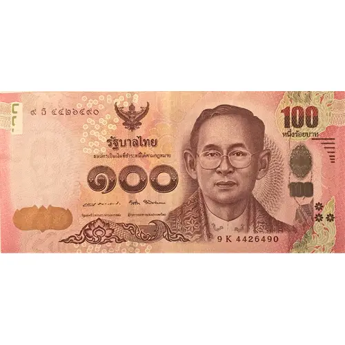 | Legenda do anverso | 100 หนึ่งร้อยบาท รัฐบาลไทย ๑๐๐ (Translation: 100 One hundred baht Thai government 100) |