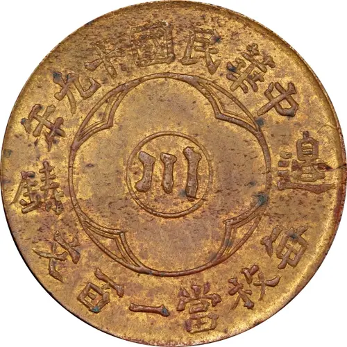 年九十國民華中 鑄邊 川 文百一當枚每 (Translation: Year 19 of the Republic of China Cast in (Chuan)bian Szechuan Each piece worth 100 Cash) |
