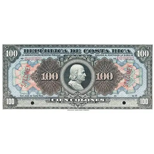 REPÚBLICA DE COSTA RICA LA ADMINISTRACIÓN DE RENTAS PUBLICAS PAGARÁ AL PORTADOR LA SUMA DE 100 San José de Costa Rica de de 19 EL MINISTRO DE HACIENDA. EL ADMINISTRATOR PRINCIPAL. CIEN COLONES EN MONEDA ACUÑADA DE PLATA AMERICAN BANK NOTE COMPANY |