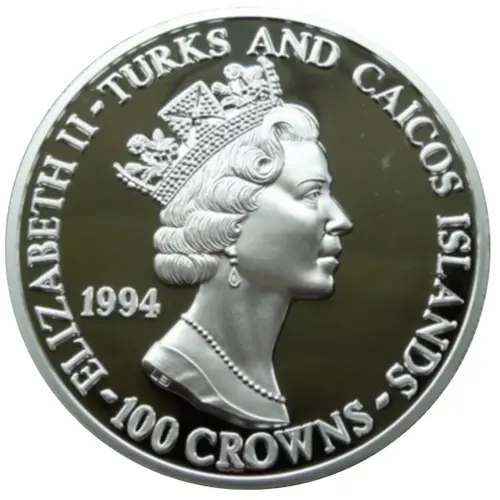 | Obverse lettering | ELIZABETH II - TURKS AND CAICOS ISLANDS 1994 - 100 CROWNS - |