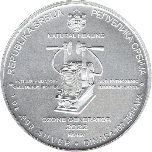 REPUBLIKA SRBIJA РЕПУБЛИКА СРБИЈА NATURAL HEALING ANTI-INFLAMMATORY CELL DETOXIFICATION ANTI-PATHOGENIC IMMUNE ENHANCE OZONE GENERATOR 2022 NBS-НБС 1 OZ .999 SILVER DINARA 100 ДИНАРА |