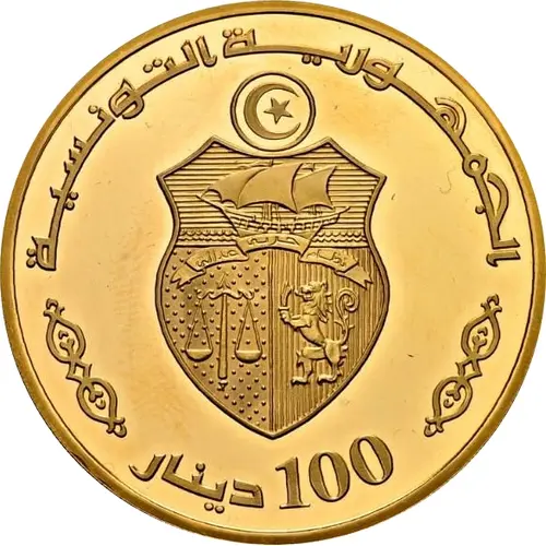 | Obverse lettering | الجمهورية التونسية 100 دينار (Translation: The Tunisian Republic 100 Dinars) |