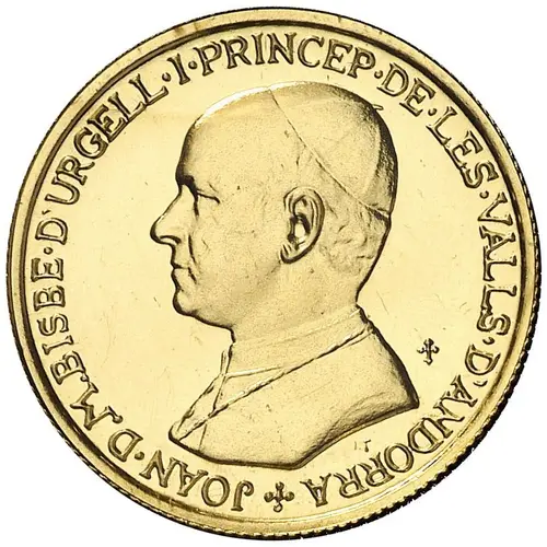 | Obverse lettering | JOAN · D. M. BISBE · D`URGELL · I · PRINCEP · DE · LES · VALLS · D`ANDORRA (Translation: Joan D.M. Bishop of Urgell and Prince of the Andorra Valleys) |