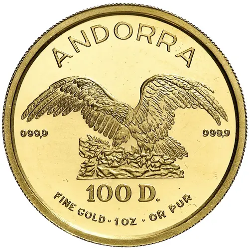 | Obverse lettering | ANDORRA 999,9 999,9 100 D. FINE GOLD · 1 OZ · OR PUR |